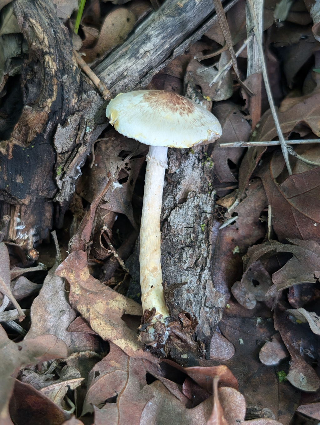 A small Agaricus in section minores that can be yellowish color with a reddish blush at the cap center when young. With age lightening in color and the cap turning to a brown in the center very similar to Agaricus kerriganii. A. friesianus is taller, more slender with a less circular more cottony annulus and found a lower elevations. Very fragrant when fresh. Solitary.